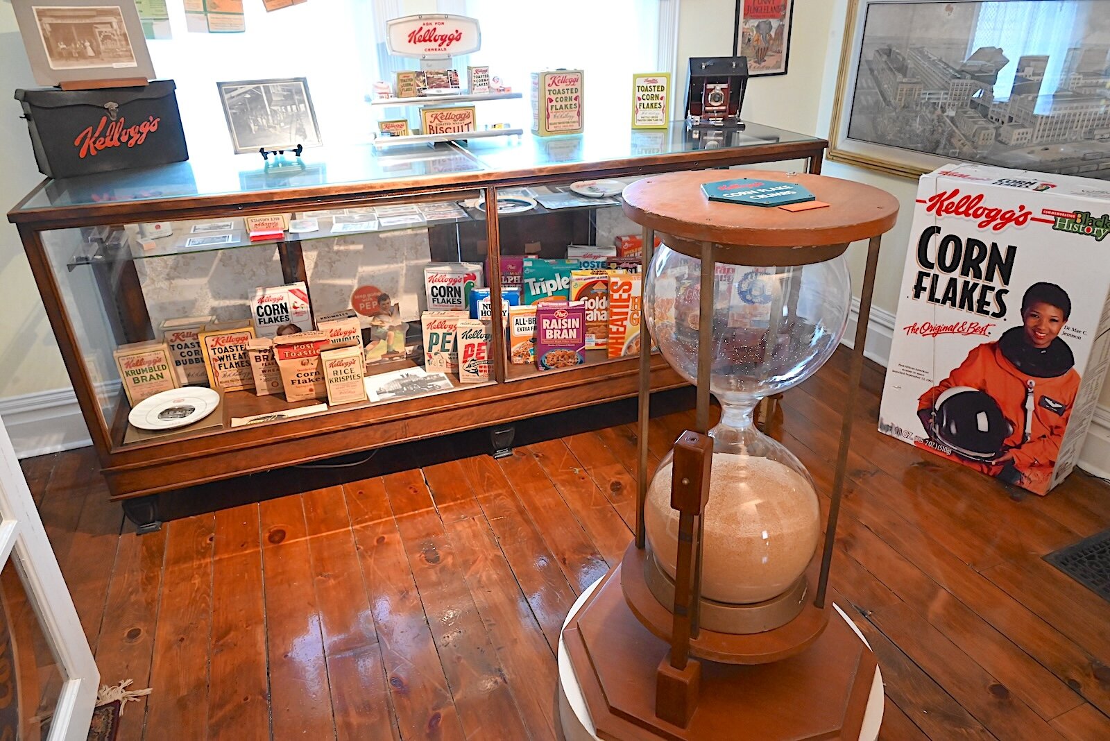 John Grap – An hourglass that was used to time the length of tours at Kellogg’s cereal plant and other Kellogg memorabilia are inside a room at Kimball House.