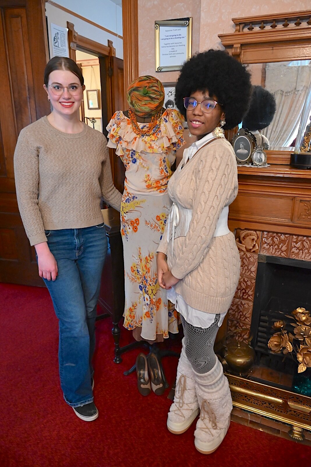 Jones says she likes fashion and considers it a form of art. Choosing the clothes that would exemplify the theme of the exhibit was easy, she says. “But learning what people wore and why the fashion trends were the way they were, and how clothes were worn a different way,” provided learning moments for her.