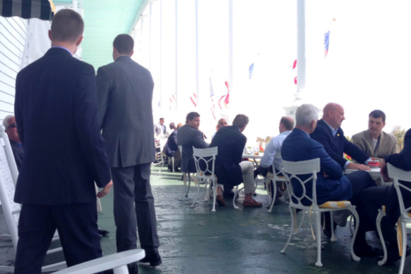 As the official program ends and everyone migrates from the Grand Hotel into town, I start bumping into people I hadn’t seen during the day. Big secret of the Mackinac Policy Conference: a lot of people come up to the island but forego the expensive main program, focusing on the free booze and serendipitous connections of the after parties.