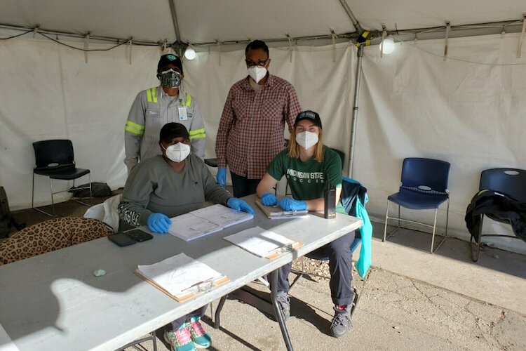 After looking for ways to help when the virus heated up and sent college classes online, Maddie began work on March 30, part of a daily crew of 50 staff and volunteers testing people who have a prescription from a doctor to receive a coronavirus test.
