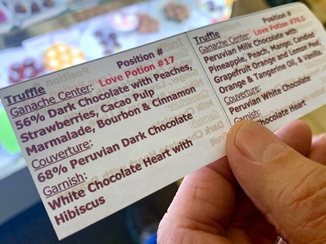 KALAMAZOO, MI – “Love Potion No. 17” is a dark chocolate truffle made with peaches, strawberries, Cacao pulp, marmalade, cinnamon, and bourbon.