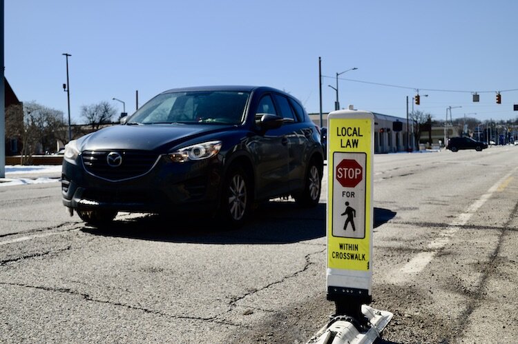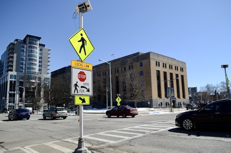 The crossing at Church is under the city ordinance that requires drivers to stop for pedestrians in all crosswalks, and last year saw the installation of walk signs that flash yellow lights when a pedestrian pushes a button before crossing.