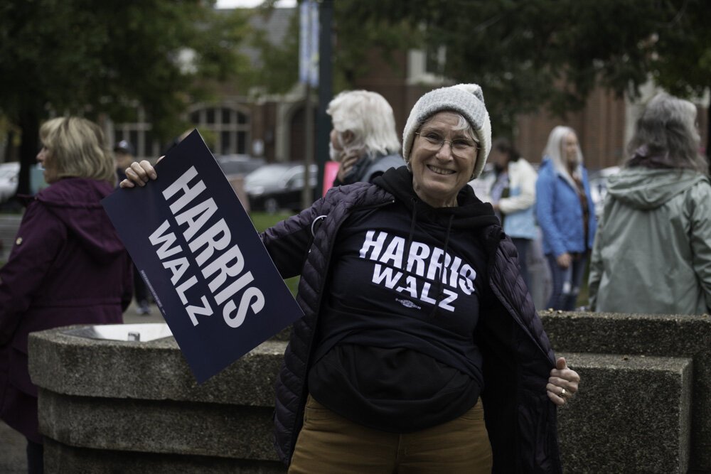 Fran Dwight – Susan Andress, a local photographer who has taken many photos for Southwest Michigan Second Wave over the years, proudly waves her sign.