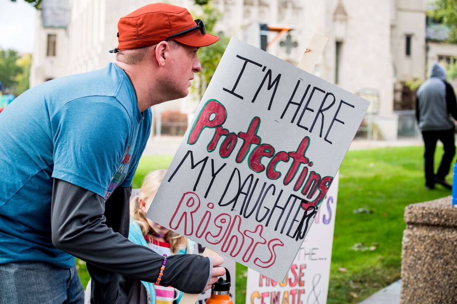 Men showed up for daughters, wives, sisters, and friends to the Kalamazoo Women’s March on Oct. 13.Fran Dwight
