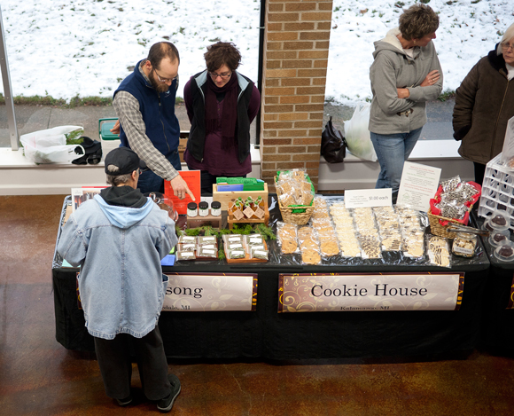 “Actually, being here at the Kalamazoo Foods Market on Saturdays is therapeutic,” he says with a grin. “It’s a chance to get out of the office and to talk to people. I get to use a different part of my brain. When I’m here, I never sit down.”