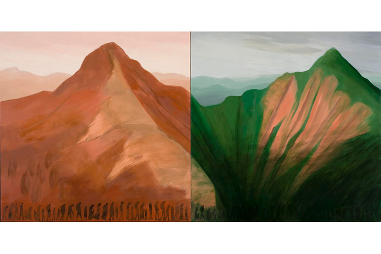 Then there’s “Farewell to the Smokies,” (2007), a diptych of the Smoky Mountains, with a line of figures walking into darkness. It’s inspired by the Trail of Tears, where the Cherokee were driven from their land in the 1830s.