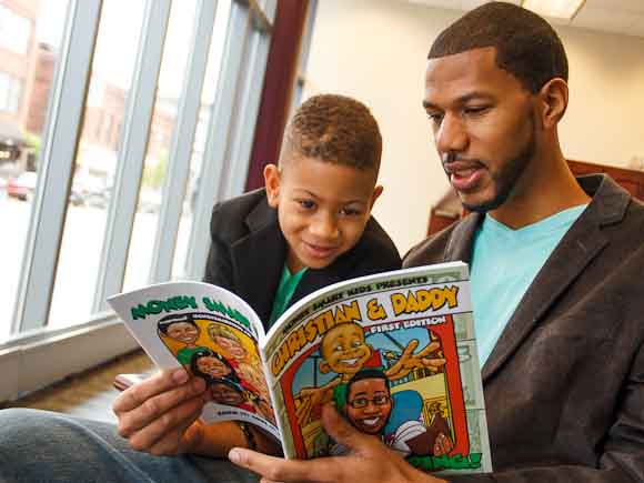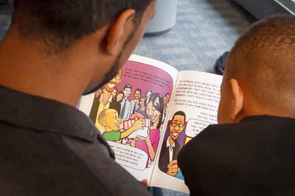 Must be destiny, Steppes thought, and the project progressed from there. Kenjji’s artwork had appeared in such publications such as The New York Times, Wired magazine, and others. He illustrated the book with caricatures of Steppes and his sons, Christian and Carter, and his wife Abra.