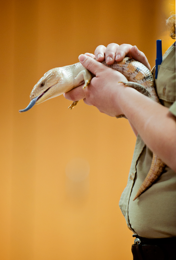 After Bailiff returned Dorado to his home behind a closed door, she appeared with an off-white lizard named Sheila. Oooohs and aaaaahs erupted around the room. But the big surprise came when Sheila shot out her long, forked tongue: It was as blue as a Colorado sky.