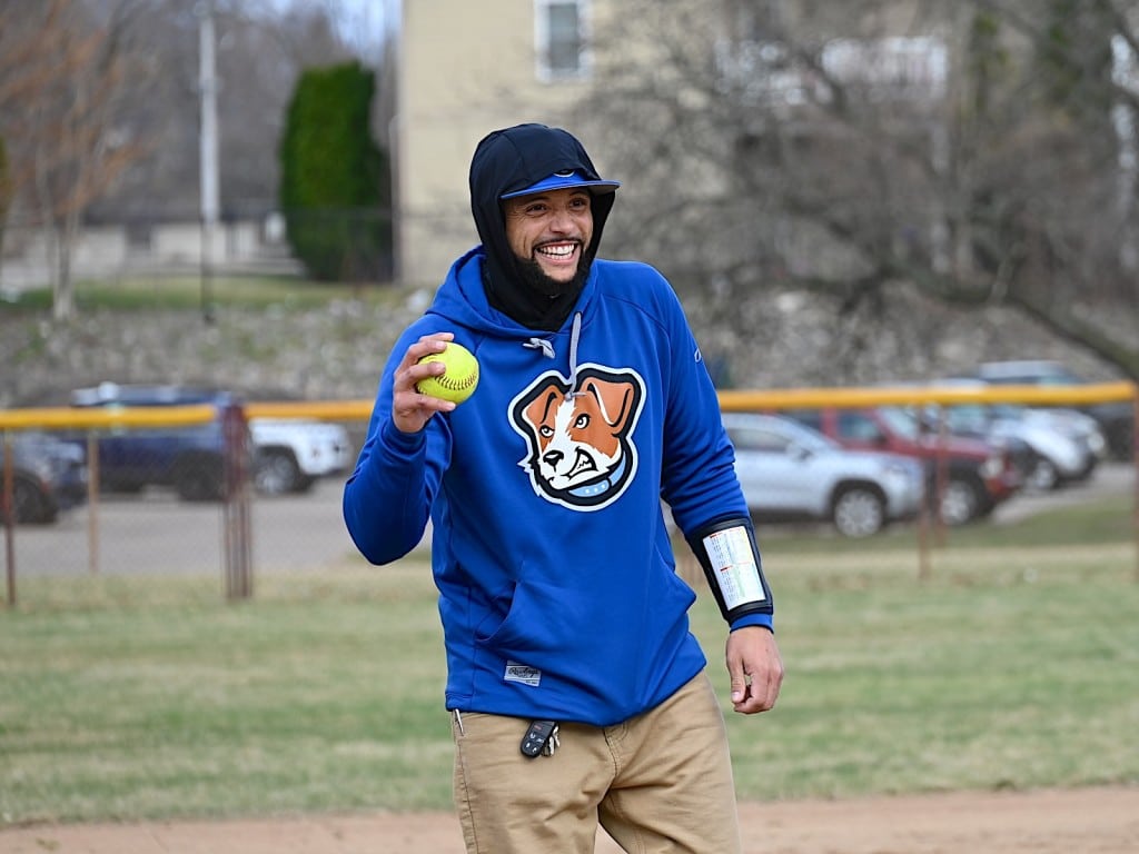 Evan Gray is in his first year as coach of Battle Creek Central’s softball team. He’s seen here at practice.