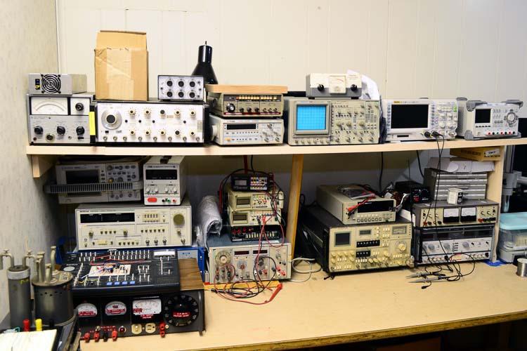 He shows off the space’s electronics room, full of oscilloscopes, stacks of Radio Shack electronics lab kits, ham radio parts, soldering equipment and other boxes of components that would make any wirehead happy.