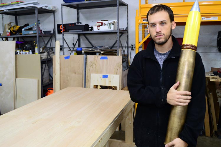 Spelling out his name, he adds, “One of those pesky Polish names. The irony of building German munition replicas does not escape me.”