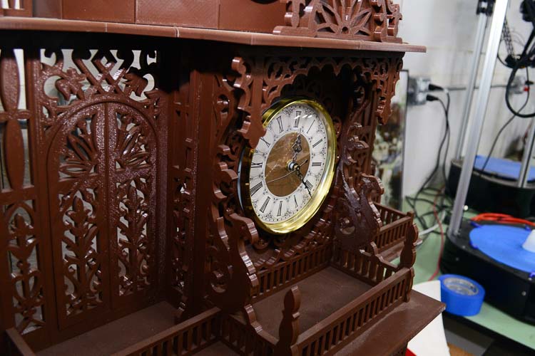 An ornate clock of carved wood sits in a corner. A closer look shows the wood is actually 3-D printed plastic, created by Jason Preuss. On a table on the other side of the room is an 88mm German World War II flack shell. It’s a replica built for display at the Air Zoo, Chris Czarnik says.