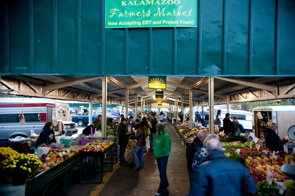 The City of Kalamazoo’s Farmers Market bustles with activity as vendors sell fruits and vegetables. The market is open through Nov. 20.
