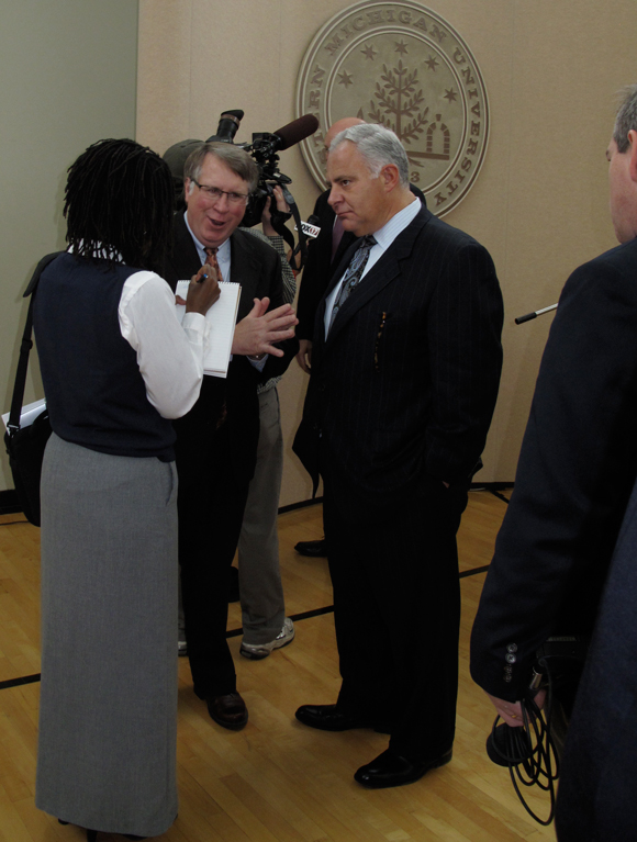 WMU President John Dunn answers questions about the $100 million cash gift to the university specifically for the establishment of the school of medicine. Photo by Kathy Jennings