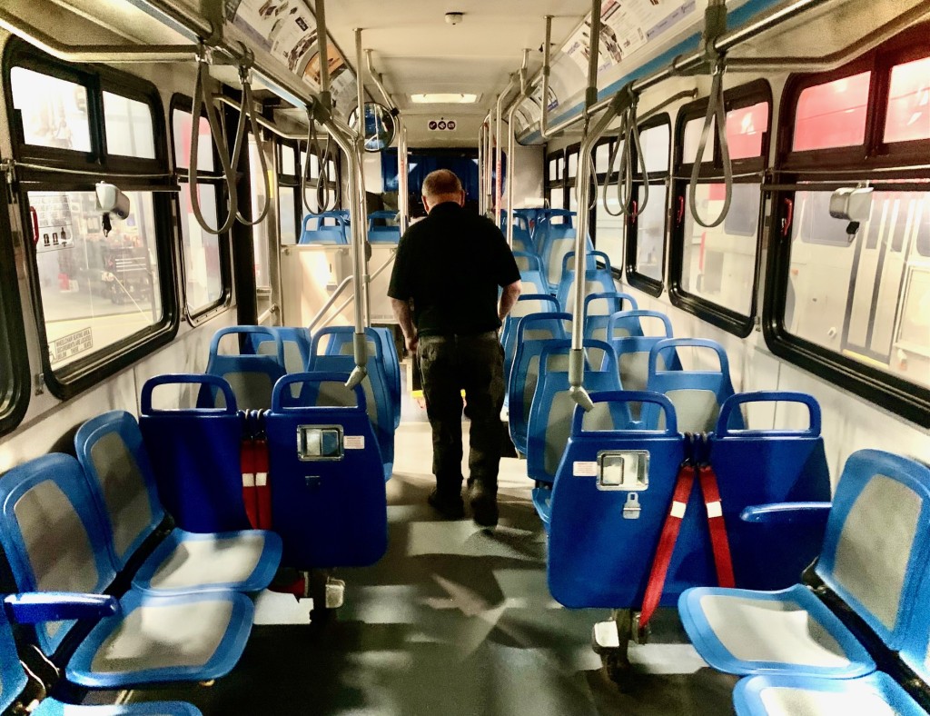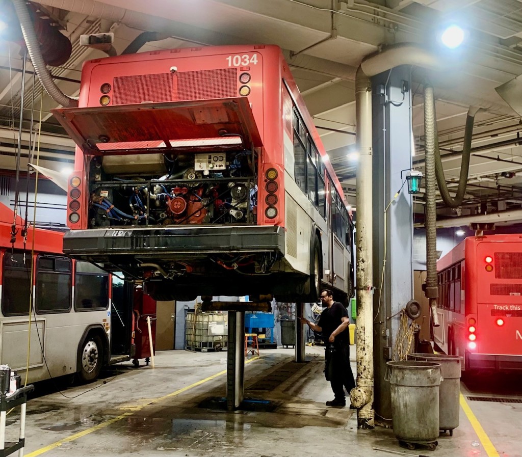 He oversees the maintenance and repair of the public transit service’s 46 large buses (including six hybrid-electric buses), its 48 para-transit vehicles (which transport combinations of people with wheelchairs and without), and its four transit vans (which also accommodate passengers with and without wheelchairs.