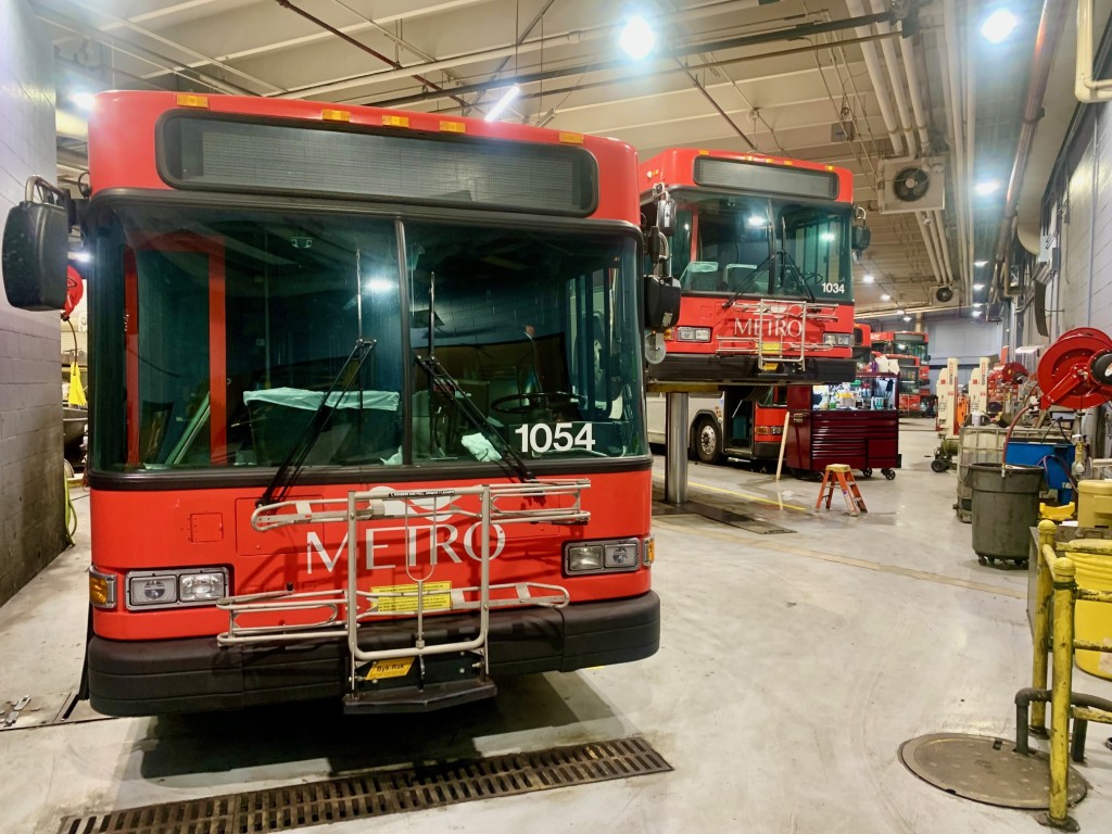 Maintenance Supervisor Tyler Wine says new workers are sometimes struck by the size of the vehicles that are serviced in Metro’s 80,000-square-foot garage.