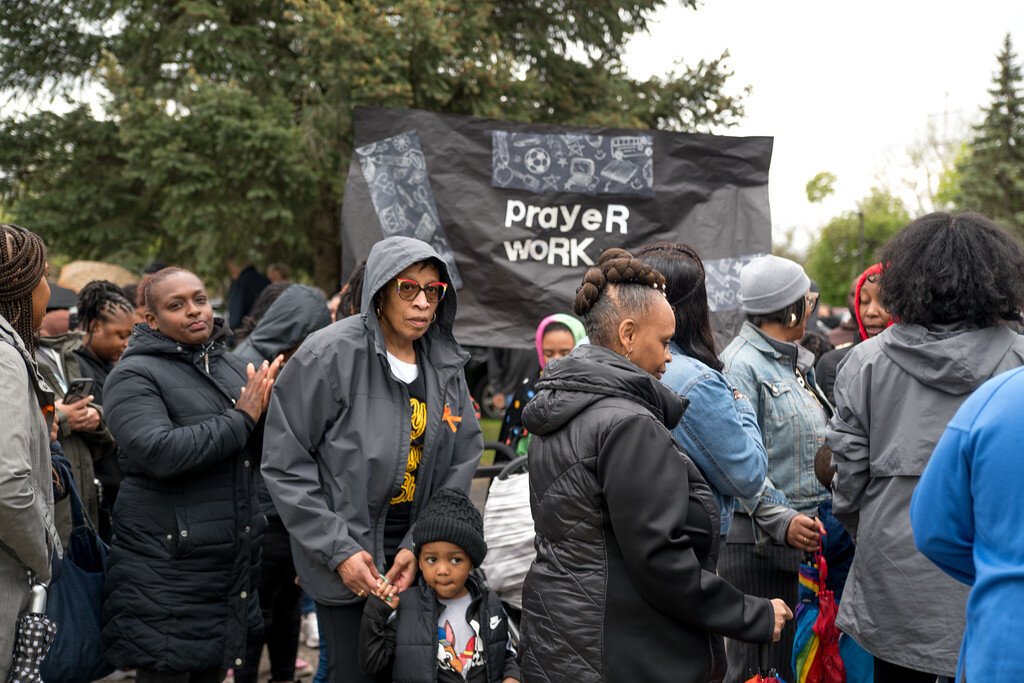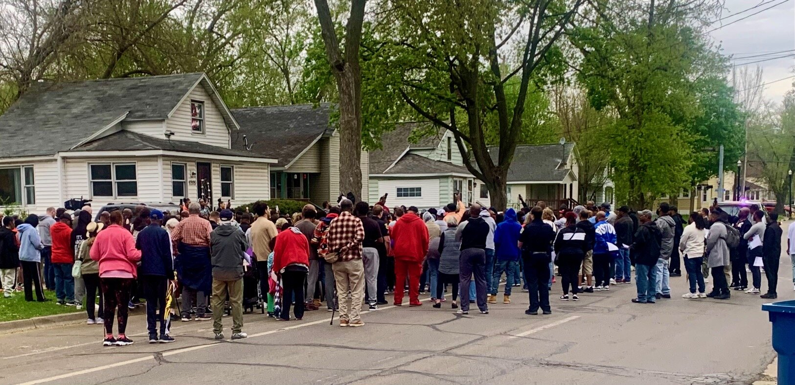 They gesture down Park Street to a place where more than 200 people filled the street. Led by local ministers, that spirited swarm of people says prayers in the area where a 21-year-old man was shot and killed on April 24.