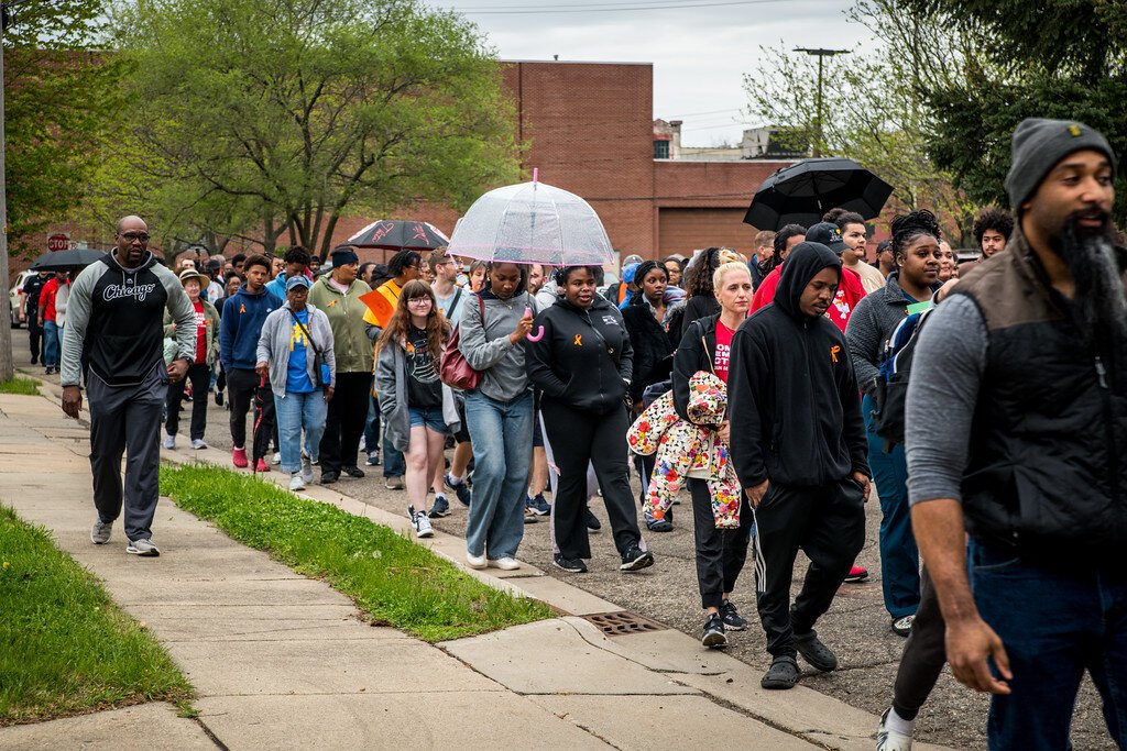 About 250 people are estimated to have participated in the April 30, 2025 anti-gun violence walk in Kalamazoo‘s North Side Neighborhood.