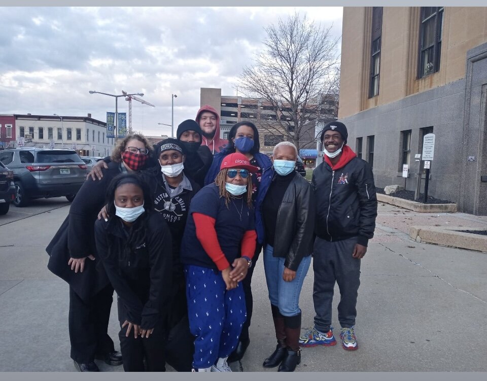 Gun violence victim Montine “Mikey” Wiley is at right as members of ISAAC Group Violence Task Force finishes a visit to the Kalamazoo County Courthouse.