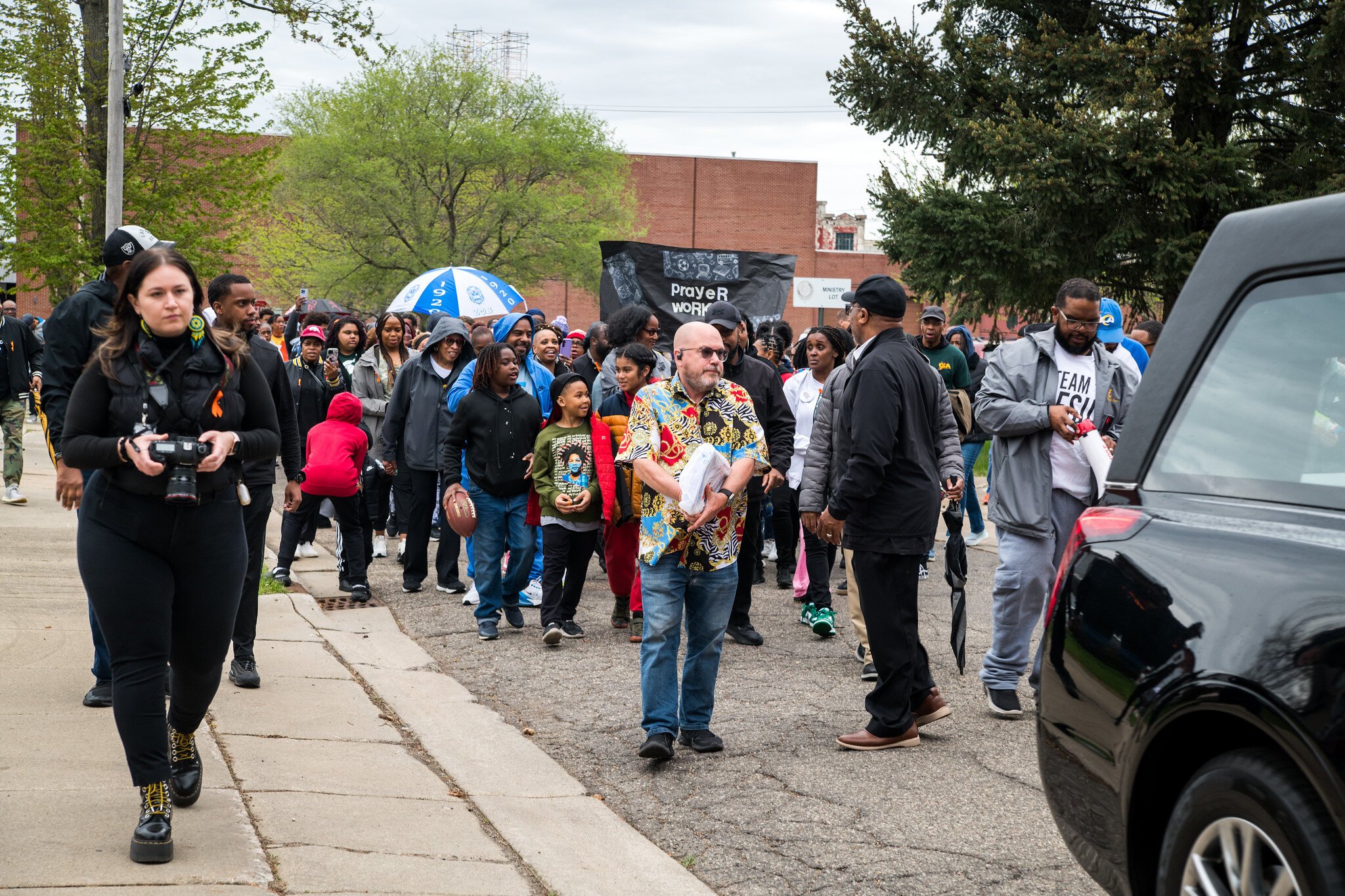 A hearse from Whiitney Memorial Funeral Home guided the walkers through the neighborhood.