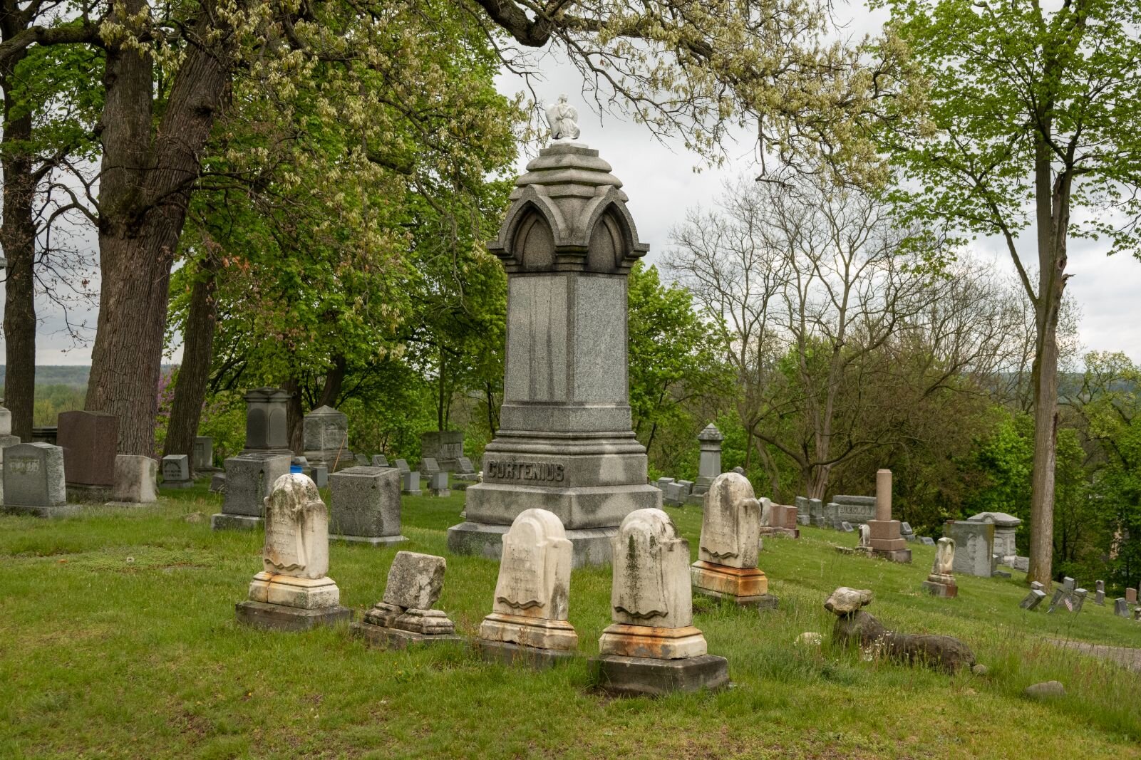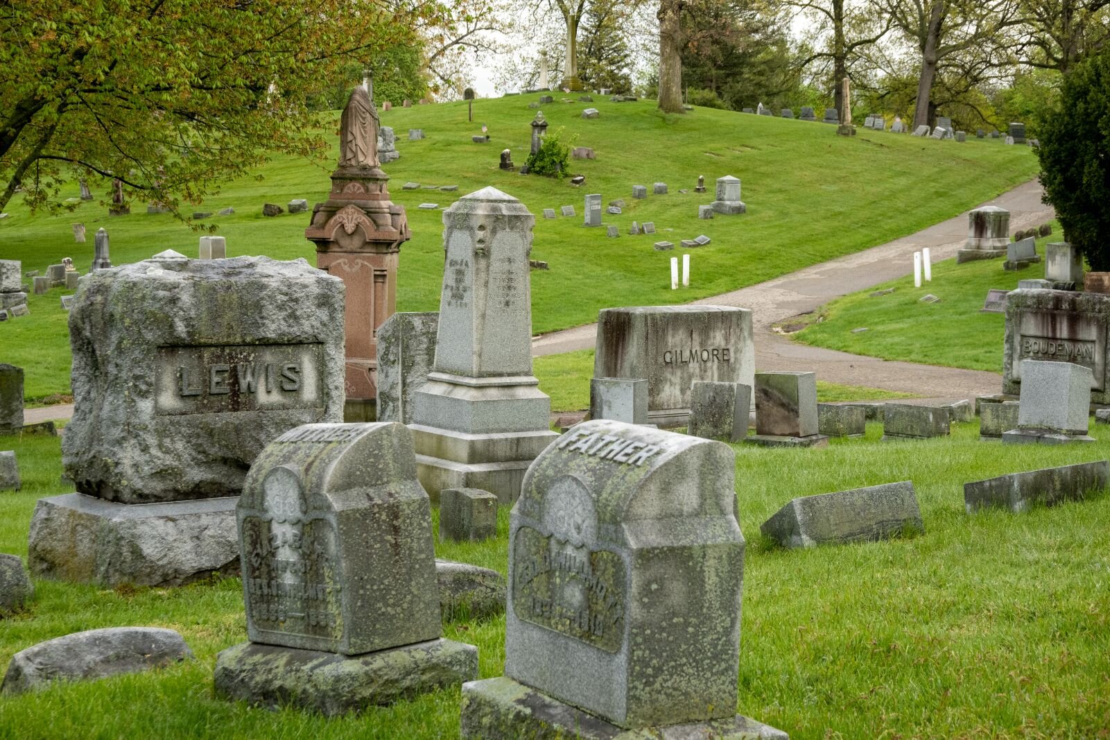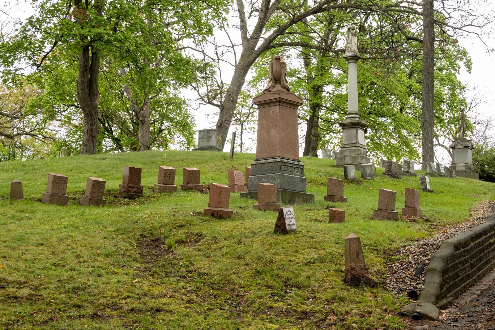 “It was called either a rural or garden cemetery,” she explains. Rather than a flat-land burial spot, she says, “The roads were supposed to follow the contour of the land. This was a style that started in places out east like Massachusetts and New England and those type of places.”