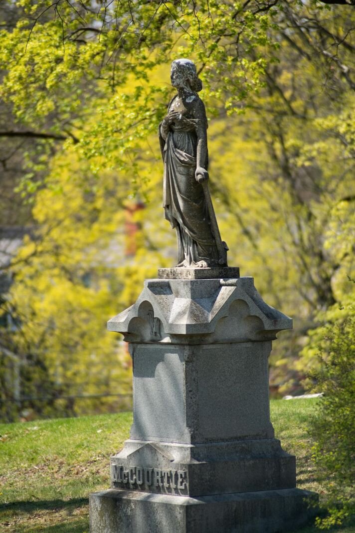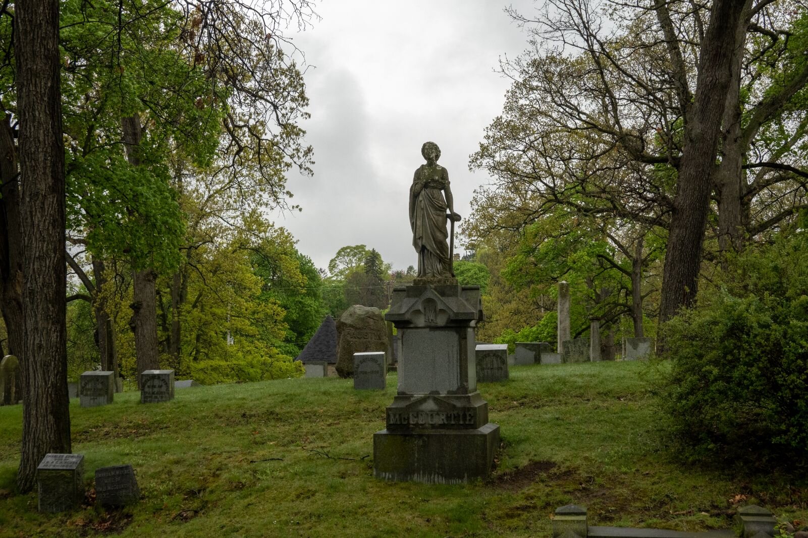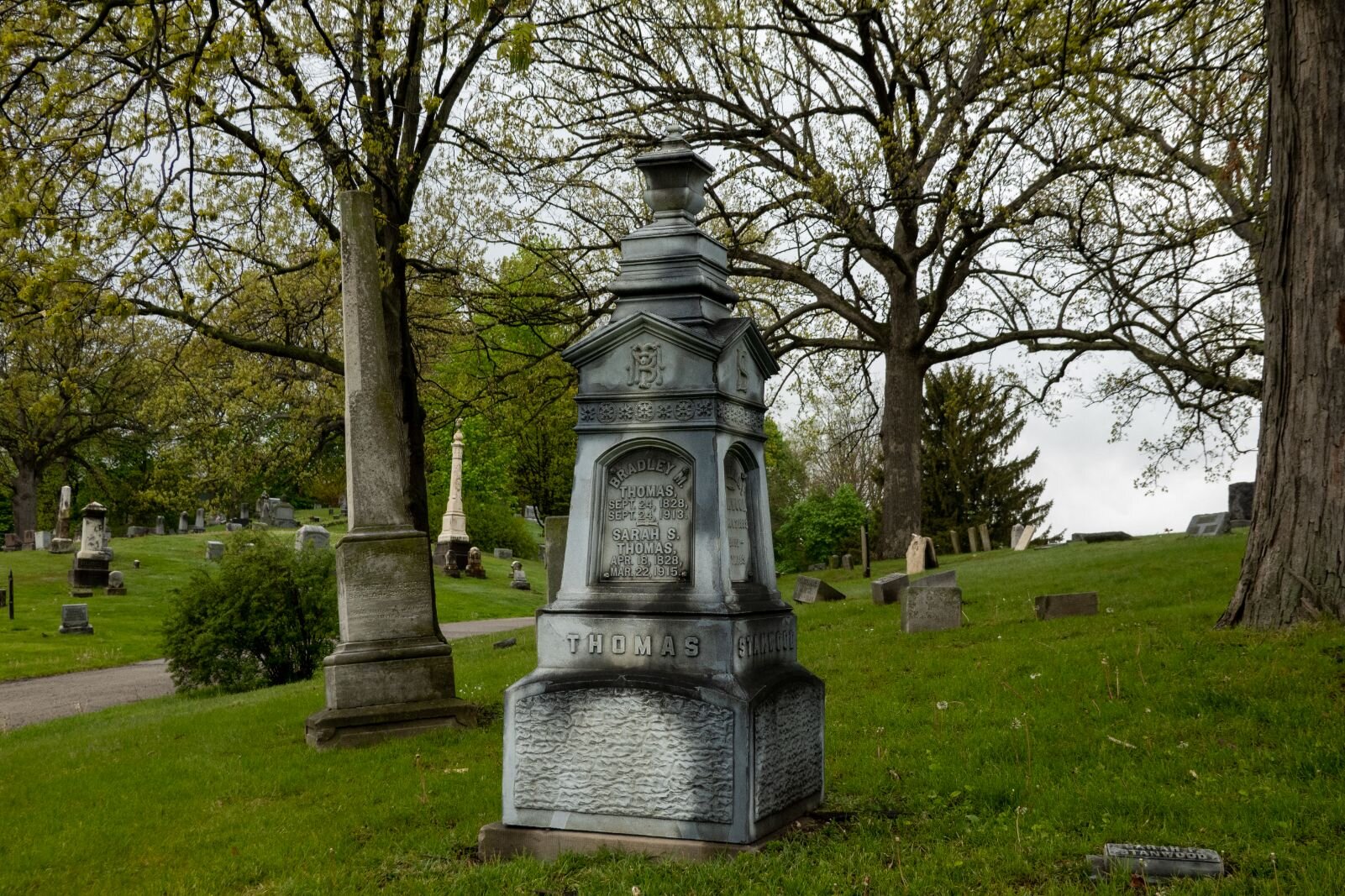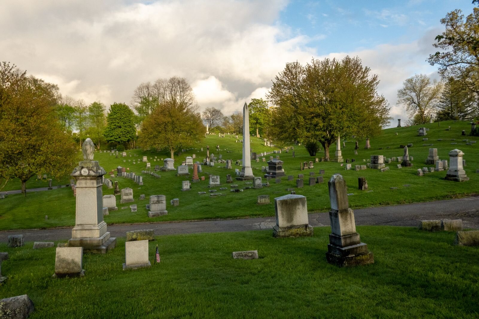 “It was called either a rural or garden cemetery,” she explains. Rather than a flat-land burial spot, she says, “The roads were supposed to follow the contour of the land. This was a style that started in places out east like Massachusetts and New England and those type of places.”
