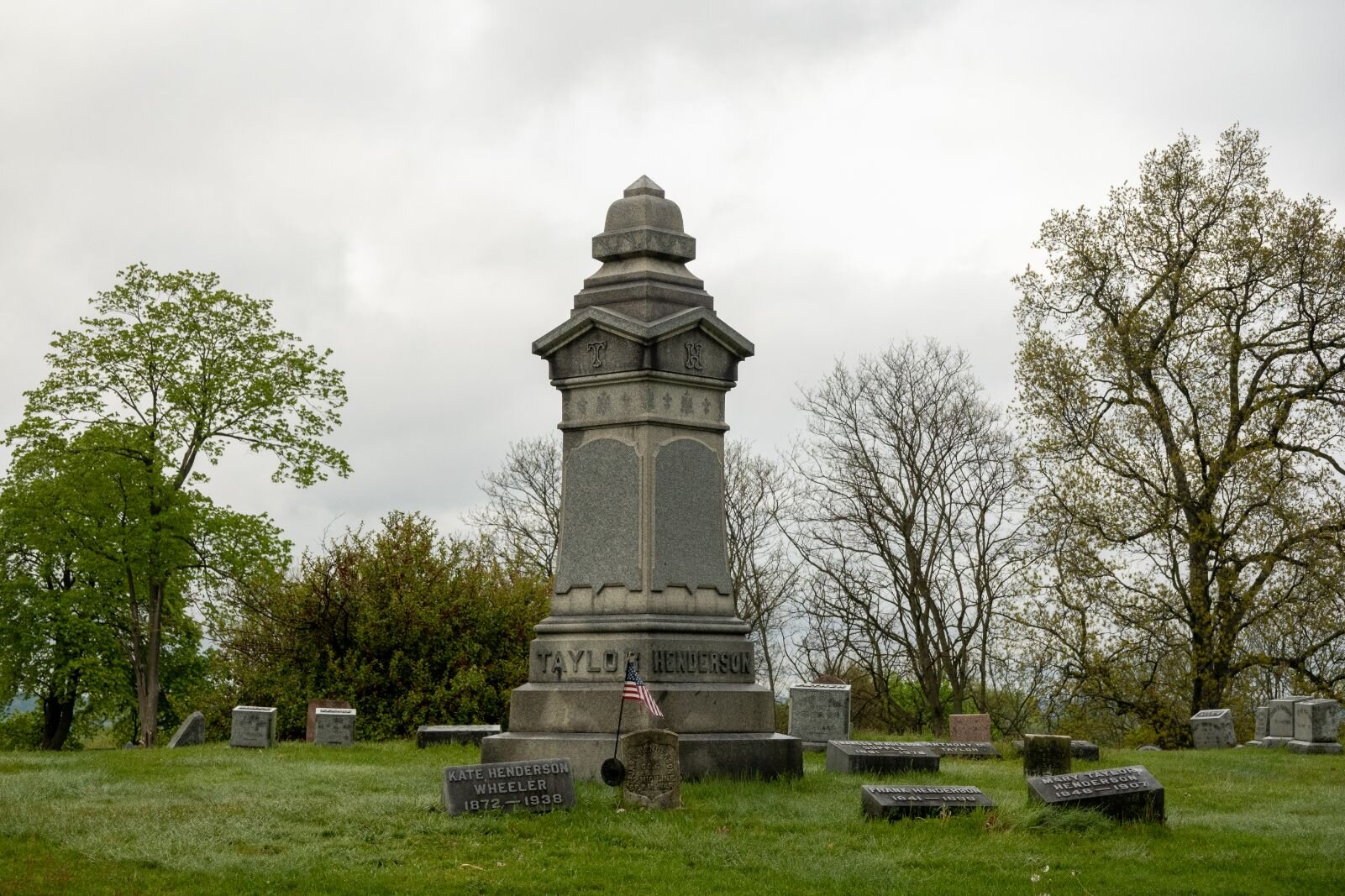 “And so here,” Houghton says of the combined family burial plot at Mountain Home Cemetery, “we’ve got Frank and his wife, at least one daughter, a son, and some in-laws. Mary Taylor’s parents are also here as well as other members of the Taylor family.”