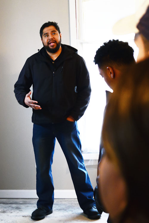 On an unusually warm January Saturday morning, he and realtor Ramon Huerta lead a large group of potential house flippers on a “Property Krawl” around the east side of Kalamazoo. The first stop, a house on Phelps Avenue, is obviously still a work in progress.