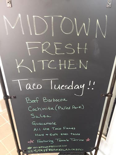 THE LONG-AWAITED OPENING of Midtown Fresh, a grocery story positioned to serve neighbors in the Vine and Westnedge Hill neighborhoods as well as lots of other places across town happened Aug. 8. Social media has been abuzz with comments like “I’m in love!” And customers report full parking lots when they arrive. The store at 1693 S. Westnedge is complete with a butcher on site, local vendors, and its own chef creating more than your usual deli fare. There are “grab-n-go” salads, a hot food bar and a cafe area for seating. Fans of Kalamazoo Coffee Co. will enjoy the cafe. As of Aug. 12 the store continued to seek out employees, as well. Jobs posted included those for the kitchen, those with experience in Beer/Wine (Beer Cicerone/Wine Steward), meat/seafood, or produce. They noted that this is not for beginners. “Experience is a MUST,” the store owners said.