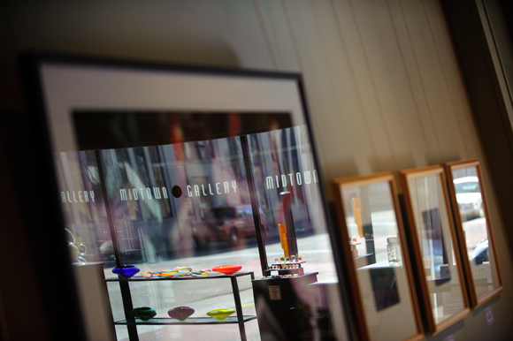 Pretty or edgy, the art shows at Midtown Gallery are a blend of every medium. There may be glasswork in the middle of the room, paintings and photographs along the walls, ceramics lining shelves, sculpture placed on the hardwood floor, jewelry under glass cases, wood carvings set on podiums, silk scarves draped along wires.