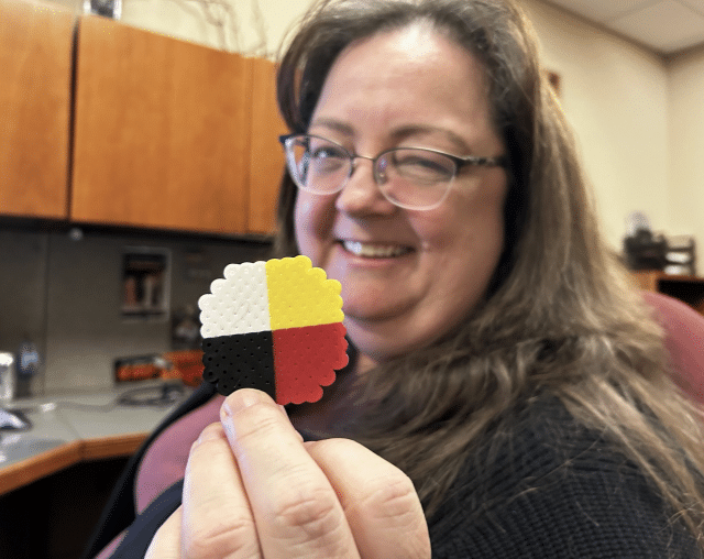 An object that’s important to Yost is a craft depicting a Native American symbol for the four directions that she received while she worked at Michigan State University. She received it from Andrew Fogiel, a former co-worker at MSU.