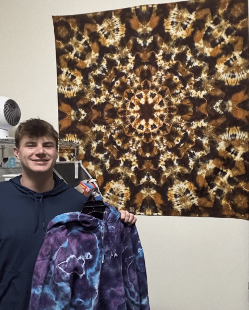 His father began tie-dyeing during the COVID-19 pandemic because he was working fewer hours. What started as a hobby to cope with job-related stress eventually turned into a small business. Walker’s father now sells clothing and other art pieces priced between $80 and $100.