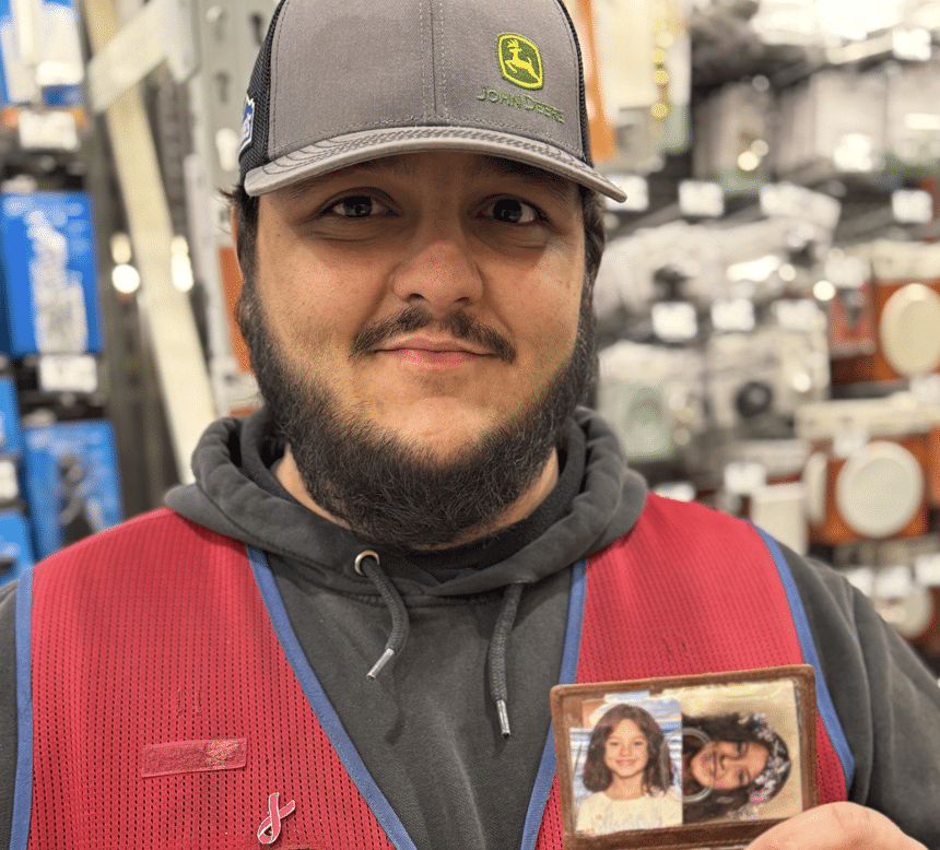 Mark Harrington, a 28-year-old Hardware Supervisor at Lowe’s in Battle Creek, holds a photo of his daughter stored in his wallet.