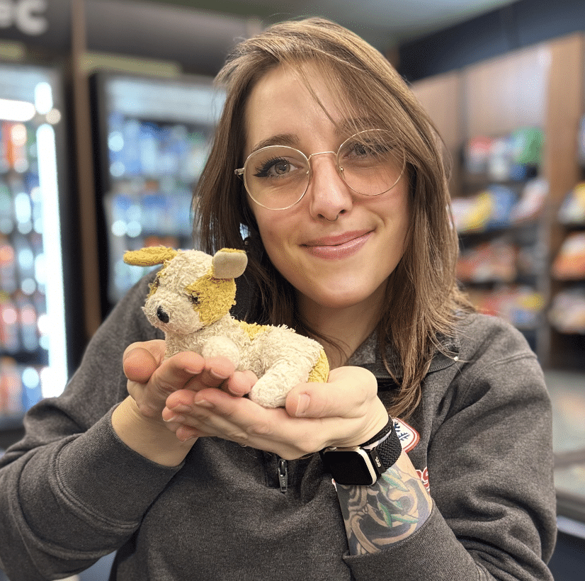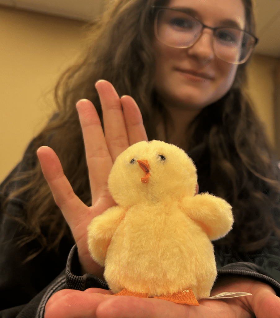 Banger found Harold in a toy mystery box she got at Meijer about two years ago. Harold helps Banger soothe her anxiety while also being a cute toy that is less awkward to use in class.
