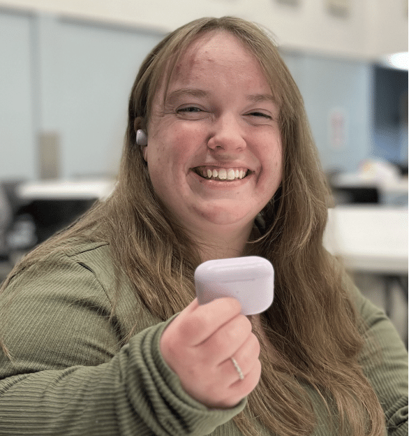 Auch owns a pair of purple earbuds she got from Amazon that she uses to listen to her favorite instrumental music in order to tune out extra noise. It also keeps her from being too overstimulated by her ADHD and the comments that people make about her physical differences.
