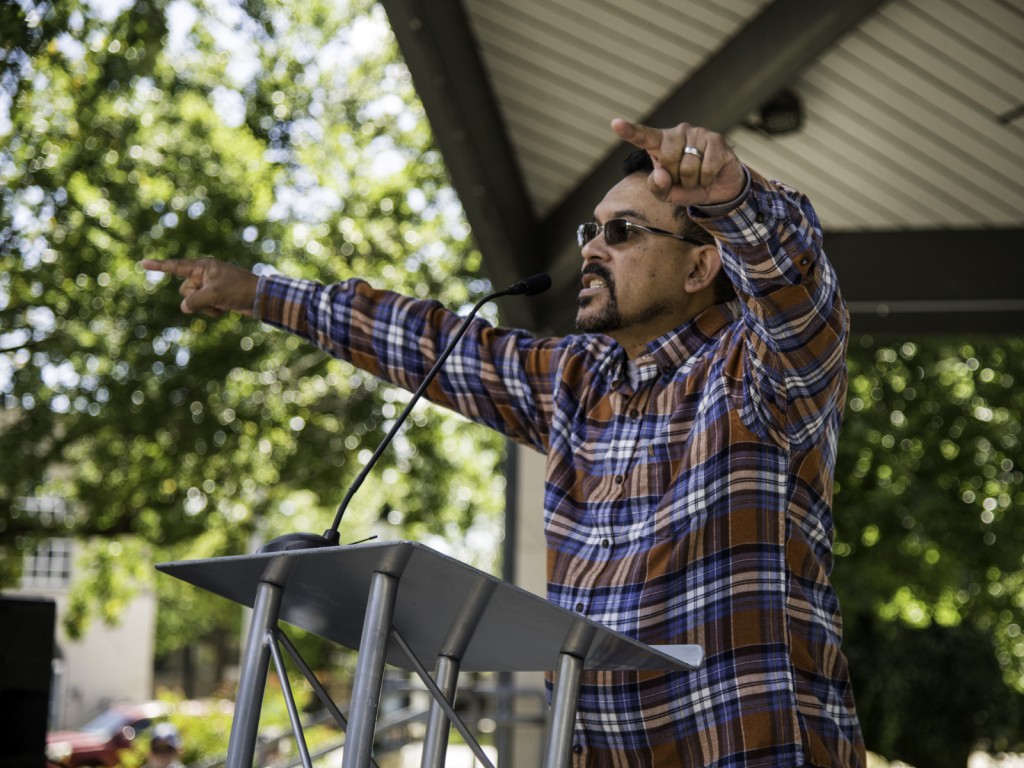 At Kalamazoo’s Democracy Fest, community members were urged to move beyond protest and pick up a paddle — taking local action to defend democracy together.