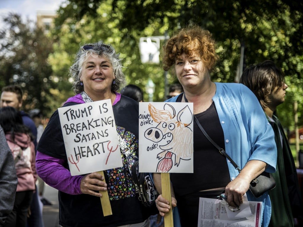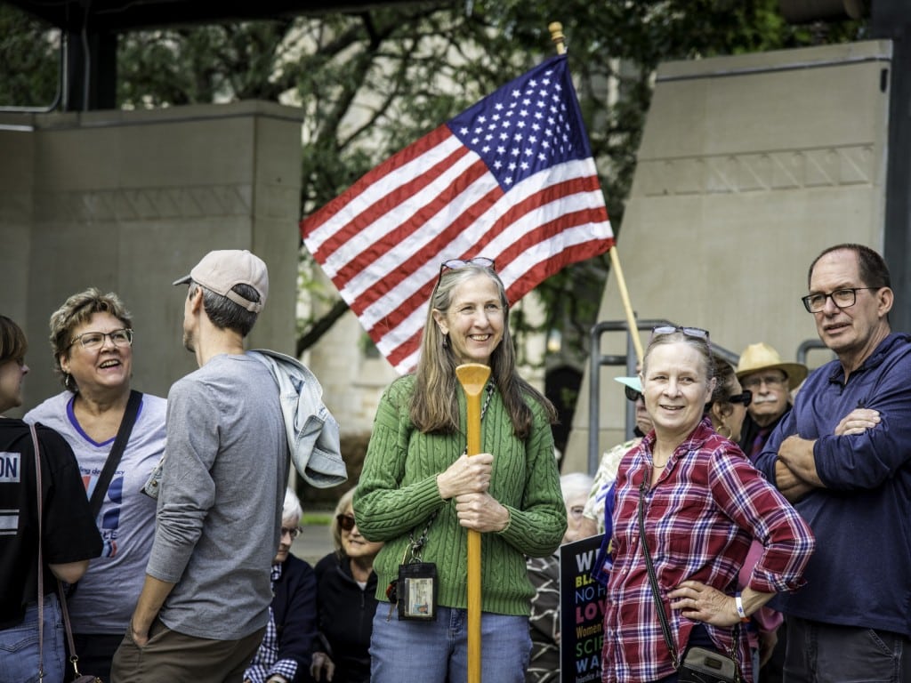 Is it an anti-Trump rally? “It’s really not just about Trump. It’s what he is trying to empower, this authoritarian, autocratic presidency. A Congress that is just letting it happen, a Supreme Court that is empowering it. And the dismantling of our democratic institutions,” Greschak says.