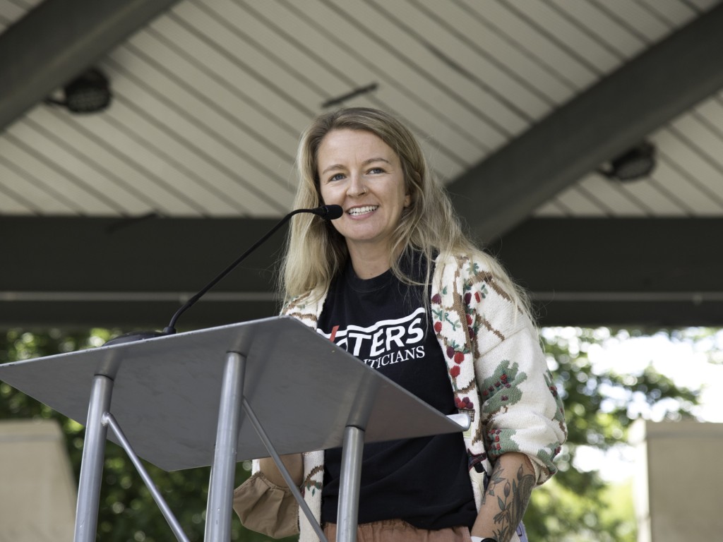 Sarkozy, founding baker behind Sarkozy Bakery and all-around Kalamazoo community figurehead, spat fire in her speech to end the day’s line-up.