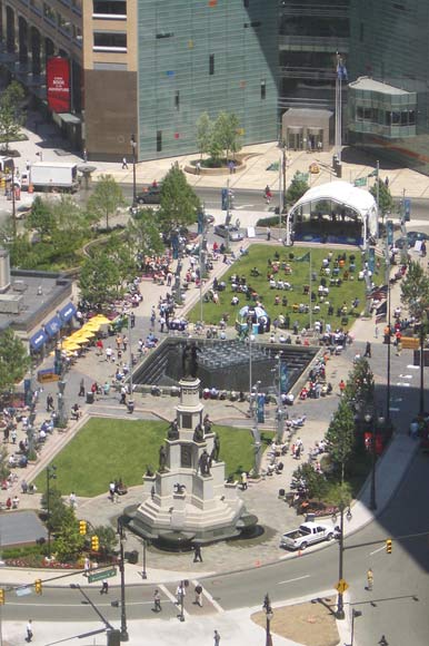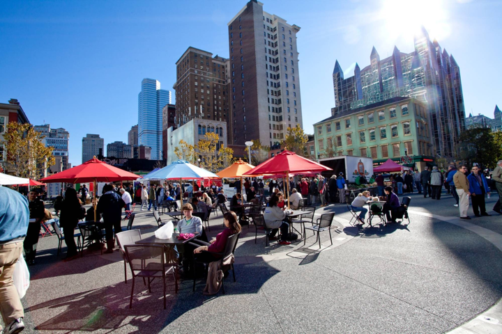 Pittsburgh’s revitalized Market Square, located in the core of downtown, might have looked very different if the public hadn’t been involved. Officials wanted a stage for performances, but they learned from the public that large, raised stages come with a cost.