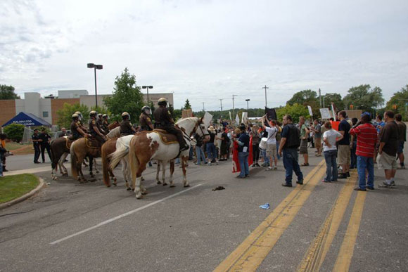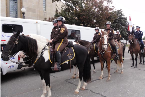 Meanwhile, the other mounted police had gone through the drive through at the McDonald’s on Kalamazoo Avenue at Rose Street for ice cream and to greet more fans in the parking lot. Once they came to a stopping point near the bus depot, one of the horses whinnied.