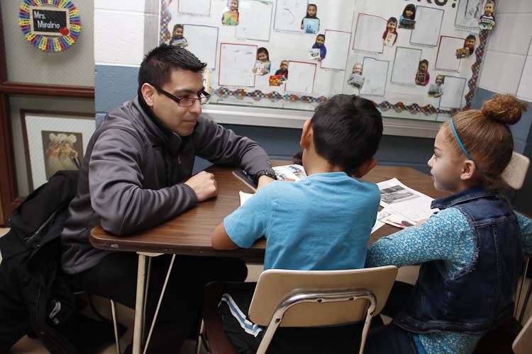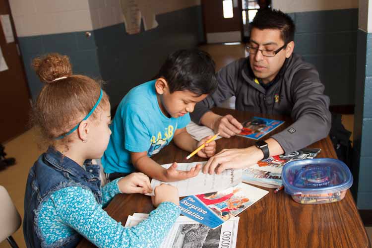 “The books the school has are in English. I always bring a Spanish book. We will read half of the time in English and half of the time in Spanish,” says Flores, who tutors two children together because they are such good friends. “They support each other. They give really simple examples that adults like me can’t even think of, and they learn super quick because of those things.”