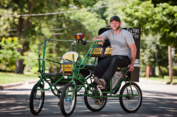 People who have been to the big cities where most pedicabs are found often light up with a smile when they see one coming around the block in downtown Kalamazoo.