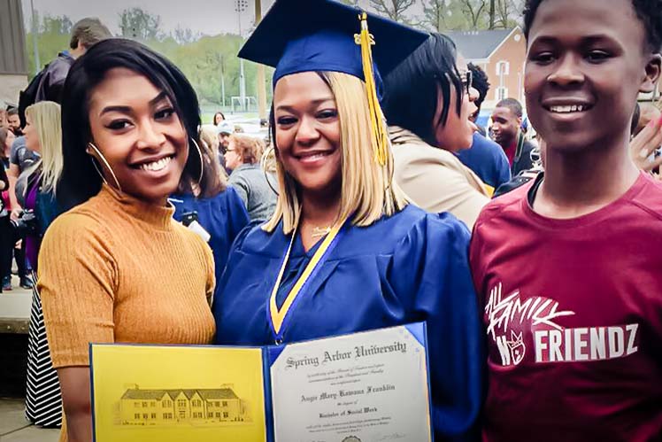 Her son is a high school freshman, graduating from 8th grade at the same time Franklin earned her bachelor’s degree from Spring Arbor University, graduating with high honors.