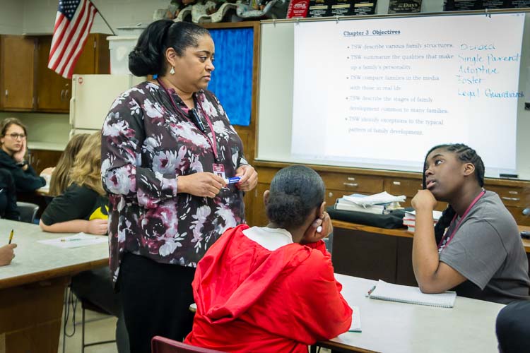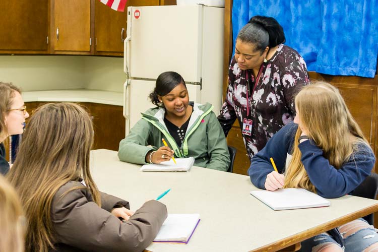 Boulding teaches at Kalamazoo Central High School and meets monthly with a student leadership group, teens who tackle community service projects throughout the school year.