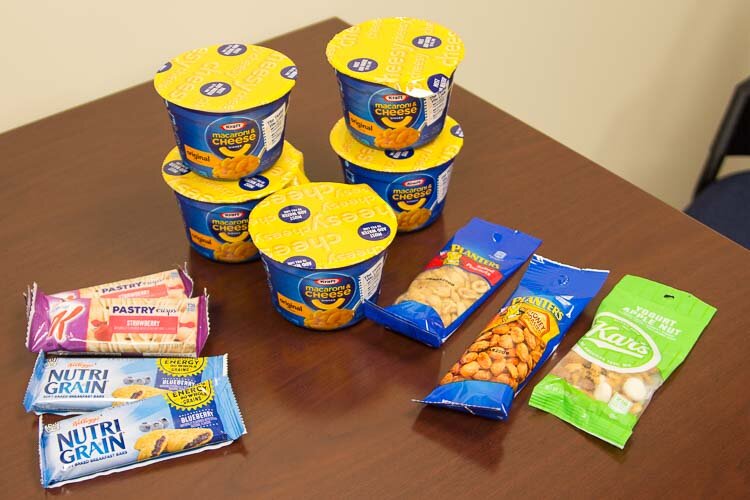 “Part of the challenge with food pantries is that you have to identify a need and people don’t like to admit they’re hungry,” Carlson says. “Our focus was to get food into students’ hands so they focus on their classes. Not all of the food we have available is healthy but it will get them through a class and onto the next thing.”