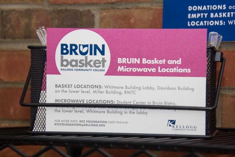 Donations of food and money to cover the cost of replenishing the Bruin Basket areas are coming from individuals and corporations in the community, including the Kellogg Co. A grant for $5,200 to purchase the shelving and other equipment for the basket stations and the initial supplies of food came from the Kellogg Community College Foundation.