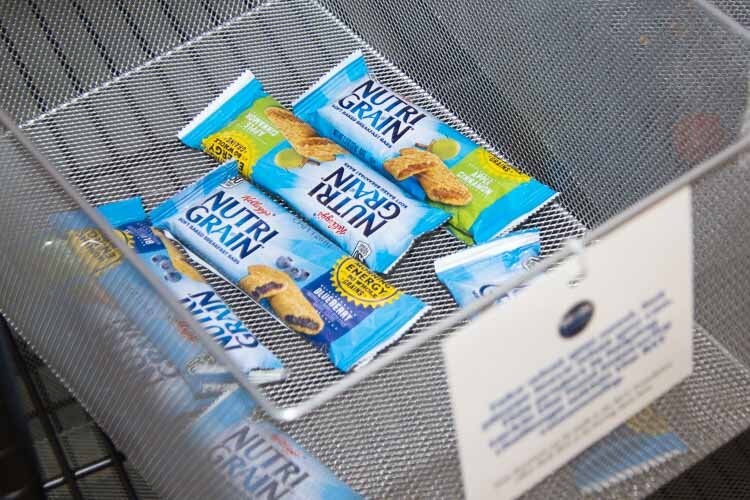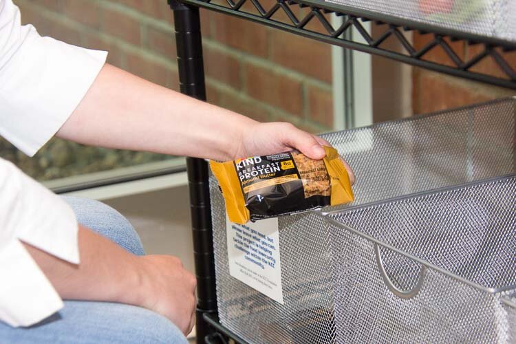 The Bruin Basket locations are intentionally placed in visible, but out-of-the-way areas to provide an element of discretion for those who use the service. They are stocked with portable snacks, including granola bars and packets of peanuts.