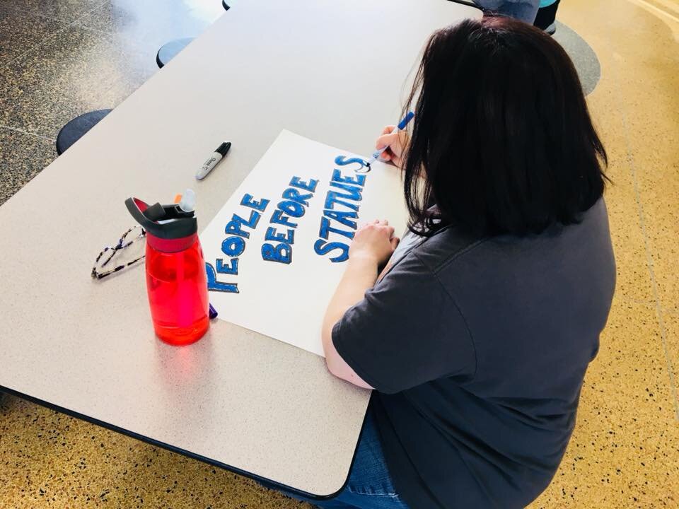 “It is important to not the lead work but to follow the people who are already doing the work,” says Sarah, who also leads White Caucus gatherings for SURJ. “We build relationships with these groups and people within these groups so we can build mutual trust so when they need something, they know they can count on us to be there for them.”