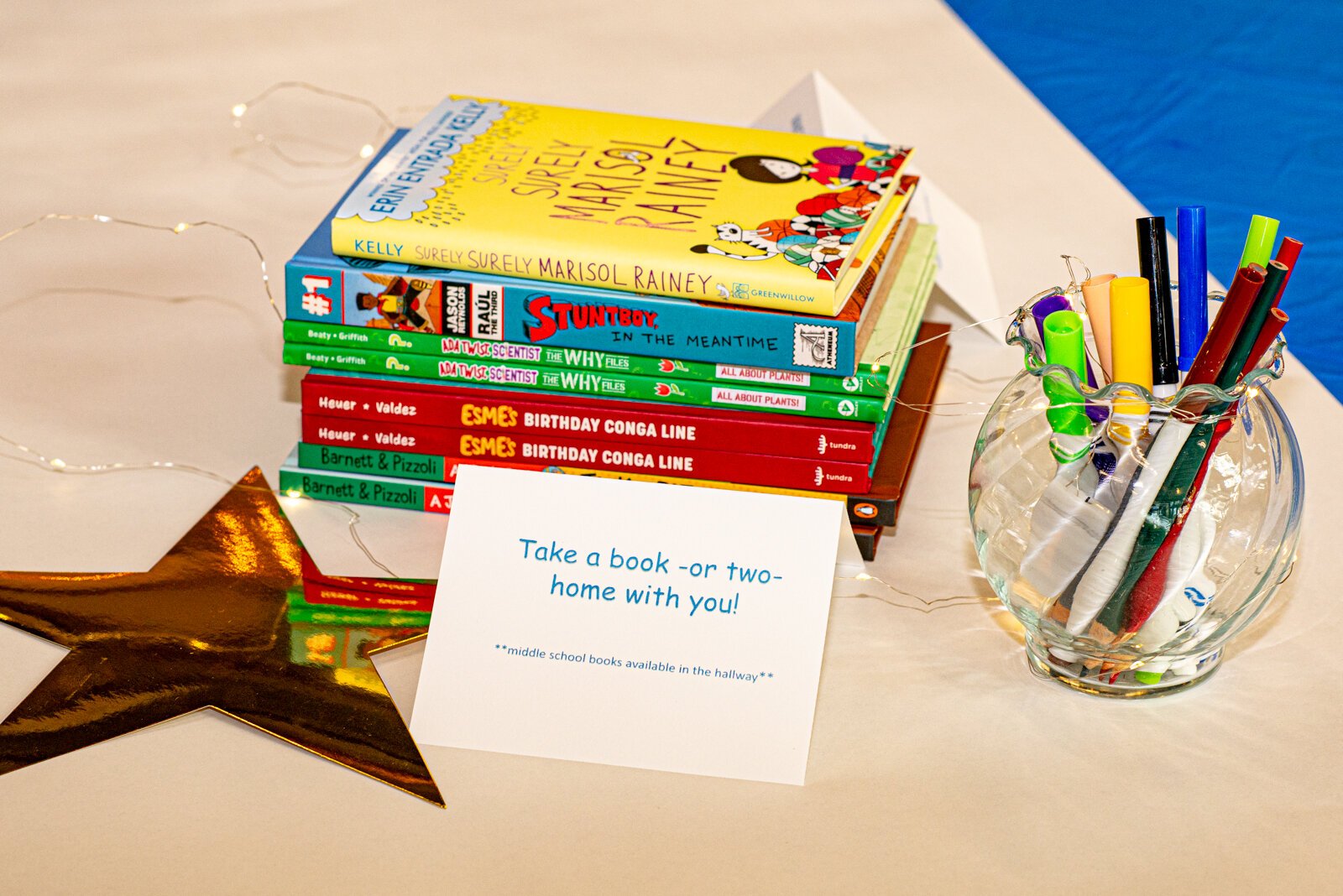 The banquet hall was filled with tables covered with tablecloths of the signature SLD Read blue, each with a centerpiece of free books for the attendees to take home. The DJ played music for most of the event, and in between trips to the dessert table (which was extremely popular) or the silent auction wall, the young folks and adults danced and visited with each other.
