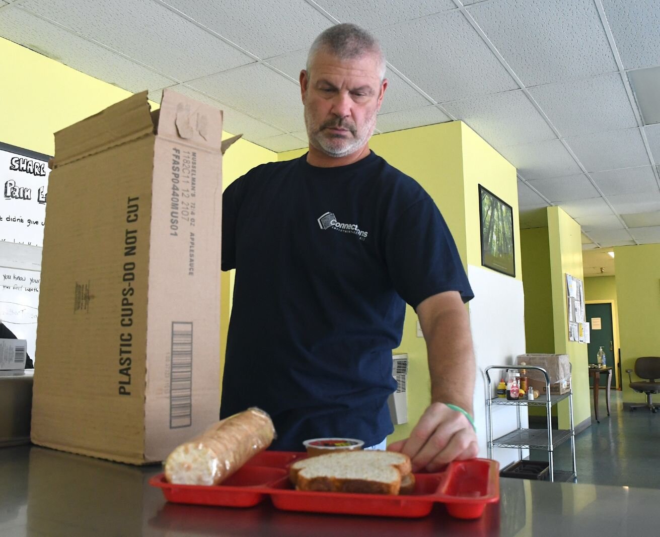 They come to a drop-in center, separated by walls and doors from the cafeteria side of the building. Currently, that center is available only to homeless individuals, not families, and Elchert says he is working on a grant that would provide funds to hire a case manager to work with homeless families to secure housing, among other needs.